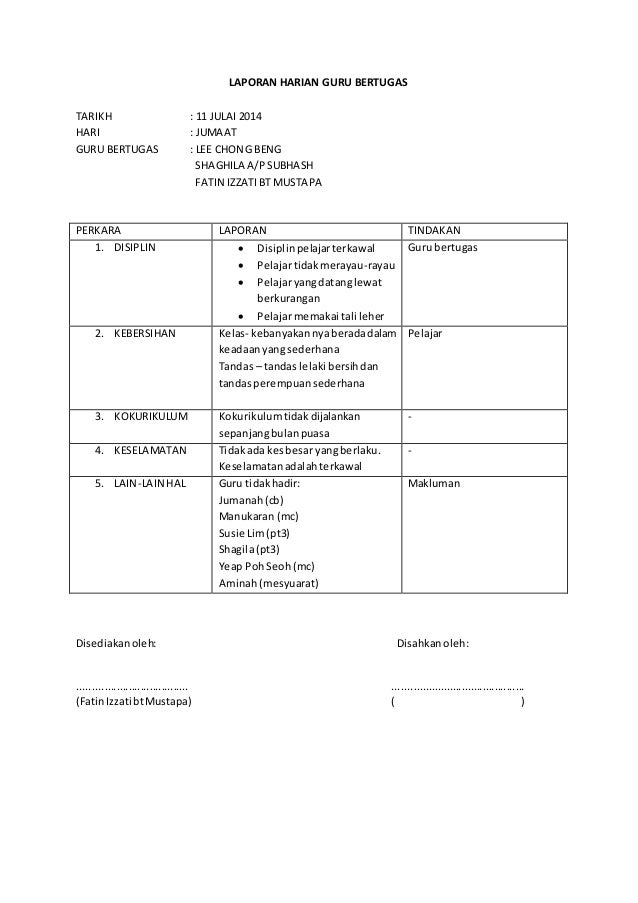 Contoh Laporan Guru Bertugas - Contoh Liar via contohliar.blogspot.com